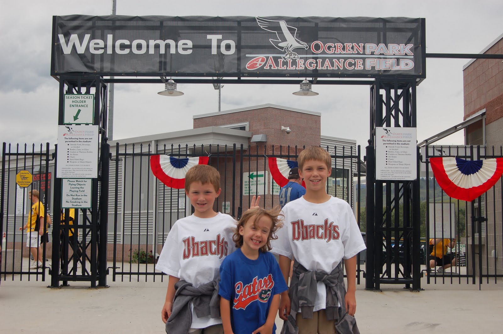 We finally made it to Missoula to see a game, we made a full day out of it. We stopped at a local pond and did some fishing, visited the Montana Smoke Jumpers Museum and then made it to see the Osprey. I was surprised at how small the stadium was, it probably seated 3500. My nephews and brother in law made the trip with us and made it a lot of fun. Of course the first thing the boys spotted was the mascot, Ollie and they had to give him a high five and a big hug. We sat out in the grass on the first base lane and the kids loved it, spending most of the time rolling down the grass burm and playing with the other kids that were there. Sammy ran down to the bullpin to say hi to all the players and of course ask a million questions. He had his picture taken with Donald Lutz who is the first baseman for the Billings Mustangs and the Osprey pitching coach Gil Heredia who I watched when I was kid, when he was a pitcher for the Phoenix Firebirds. Missoula is probably the most beautiful city I have visited in the northwest and can't wait to go back. We had a great time and looking forward to next years trip, we will be going to the 2011 MLB Allstar game.